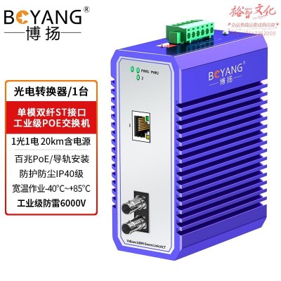 博扬 工业级POE交换机单模双纤ST 一光一电百兆收发器 宽温导轨式以太网光电转换器 20km含电源 BY-PF1012SSKU:yzwhyp1015405
