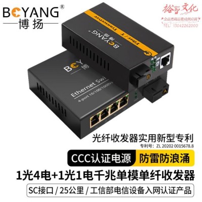 博扬(BOYANG)BY-DG104A/B 千兆一光四电单模单纤光纤收发器交换机 光电转换器 防雷SC接口 25公里外置电源SKU:yzwhyp1015456