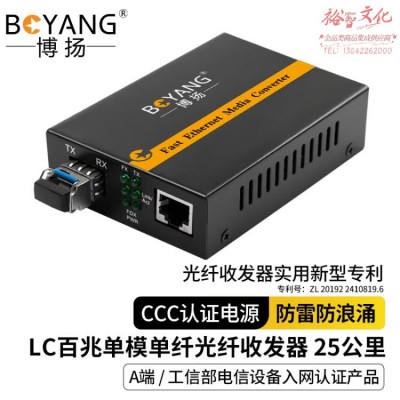 博扬(BOYANG)BY-WF813A百兆单模单纤光纤收发器 光电转换器 支持14槽机架 防雷LC接口 25公里外置电源一台SKU:yzwhyp1015483