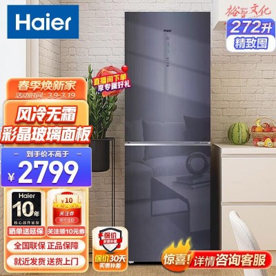 首页 > 电气设备 > 电冰箱 > 海尔(Haier)冰箱 272升智能双变频风冷无霜小型家用双门电冰箱 BCD-272WLHC2D0B1 (SKU: yykj-240410114125 )SKU:yzwhyp1015882