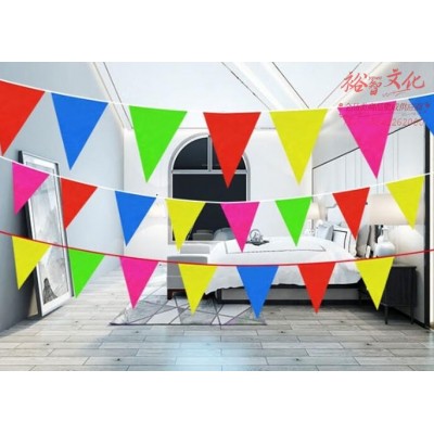 首页 > 建筑建材 > 装饰材料 > 彩色三角旗帜烫边三角串旗小号装饰布置小彩旗80米150面小旗SKU:yzwhyp1015969