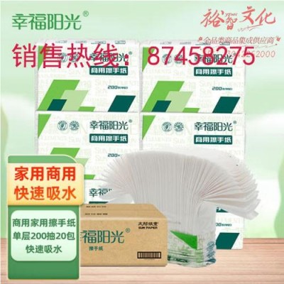 幸福阳光擦手纸巾 抽取式3折擦手纸 单层加厚200抽*20包 吸水吸油擦拭纸SKU:yzwhyp1016556
