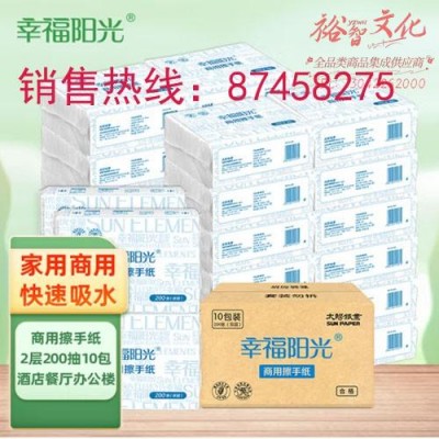 幸福阳光擦手纸巾 抽取式3折擦手纸 双层200抽*10包 吸水吸油擦拭纸 (柔)SKU:yzwhyp1016580