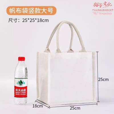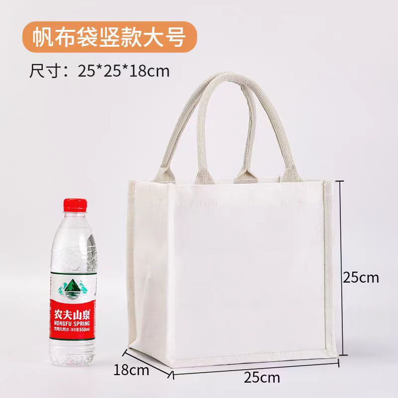 白色手提帆布包学生帆布袋单肩斜挎收纳包拉链拎竖款25*25*18cmSKU:yzwhyp1016591
