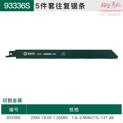 世达(SATA)93336S 5件套往复锯条228MM,10-14T SKU:yzwhyp1016764