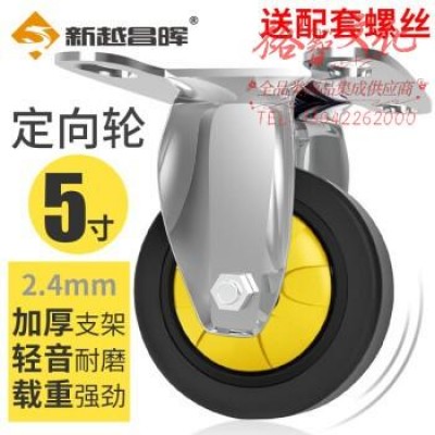 新越昌晖小推车脚轮定向轮万向轮耐磨工业轮子车轮轱辘 5寸TPR黑黄色定向轮SKU:yzwhyp1016966