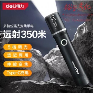 得力(deli)DL551032 手电筒强光变焦超长续航野外生存超亮军远射户外家骑行专用灯 5档按钮调光SKU:yzwhyp1017037