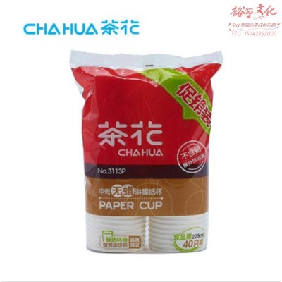 1100199319EA 茶花 3113P 中号无蜡淋膜纸杯(促销装)(1*40)SKU:yzwhyp1017566