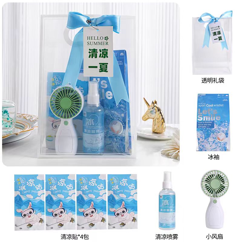 首页 > 建筑建材 > 其他防护用品 > 夏日防暑降温包套装礼品清凉套装(风扇 冰袖 清凉喷雾 冰凉贴)SKU:yzwhyp1018841