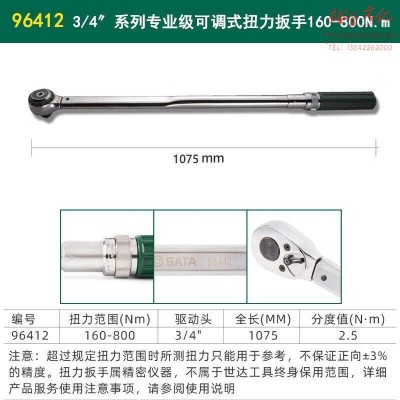 世达(SATA)96412 3/4″系列专业级可调式扭力扳手160-800N·m SKU:yzwhyp1019223