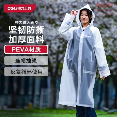 得力(deli)非一次性成人雨衣雨披户外半透明骑行雨衣男女带帽加厚雨披白色SKU:yzwhyp1019358
