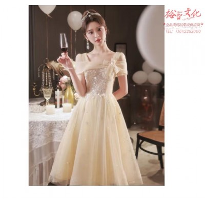 香槟色晚礼服2024新款成人礼小个子生日宴会轻奢小众高端艺考裙女 香槟色中长款 XS/S/M/L/XL/XXL/XXXL码数SKU:yzwhyp1019480