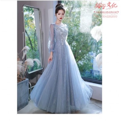 首页 > 装具 > 普通服装 > 蓝色晚礼服女 新款宴会气质长袖轻奢小众高端演出艺考裙 蓝色 XS/S/M/L/XL/XXL/XXXL码数SKU:yzwhyp1019532