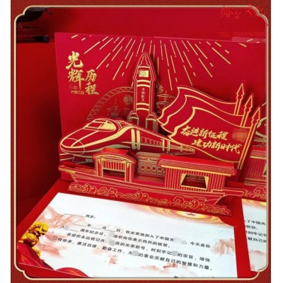 2023新款中国风党员政治生日贺卡定制中国风3D立体入党周年党龄感恩祝福纪念卡片单位企业可定制 横版红船款 10个起售SKU:yzwhyp1019986