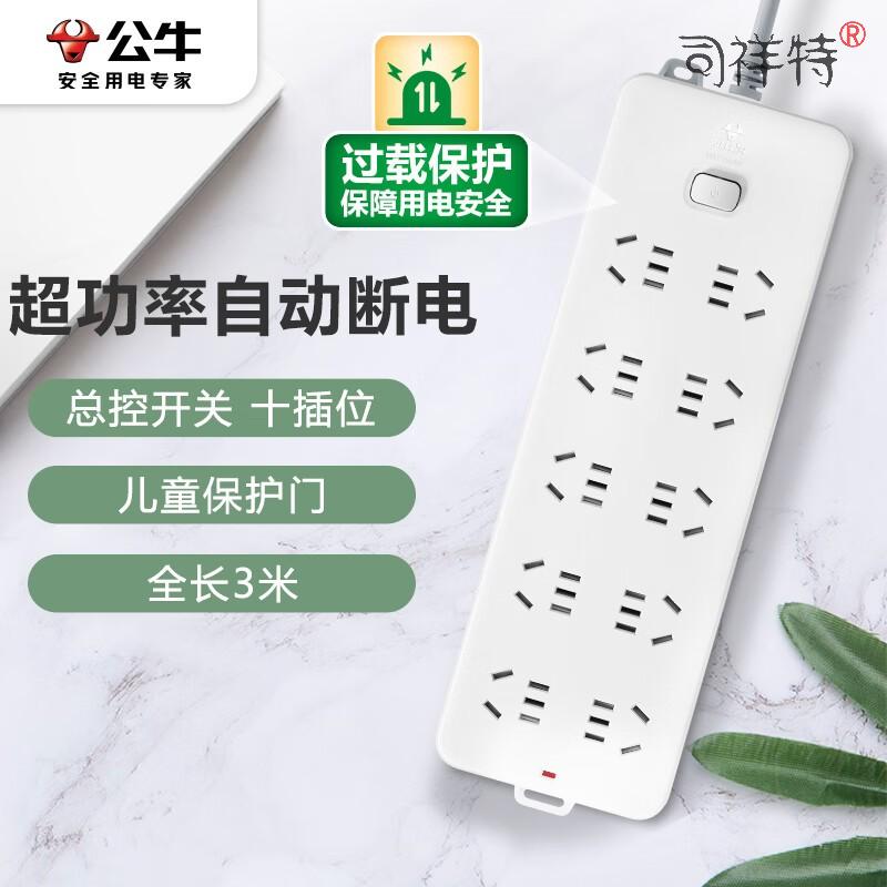 首页 > 建筑建材 > 开关插座 > 公牛(BULL)GN-218 3M新国标过载保护多功能超功率插座/插线板/插排/排插 10位总控全长3米SKU:SXT10009566SKU:yzwhyp1020172