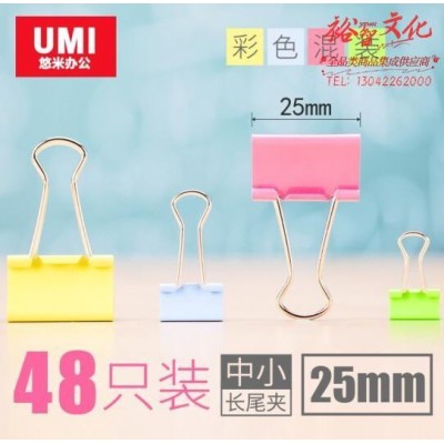 彩色长尾夹 鱼尾夹票夹燕尾夹资料夹 25mm 48只/筒 彩色(1筒)SKU:SKU:yzwhyp1020710