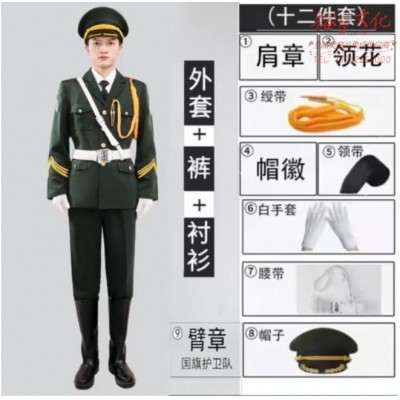 首页 > 装具 > 普通服装 > 国旗升旗手仪仗队服装男女演出礼服中学生升旗服装国旗护卫队制服 绿色男款十三件套 130/140/1450/160/165/170/175/180/185/190/195码数SKU:yzwhyp1021241