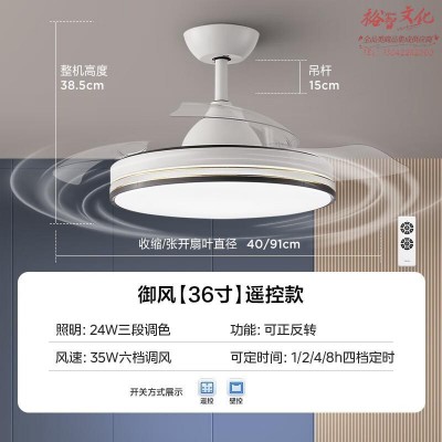 美的LED灯 吊扇灯 风扇灯 LED吊灯遥控定时电扇隐形扇叶灯饰灯具 【御风】36寸 24W照明 风叁SKU:yzwhyp1021275