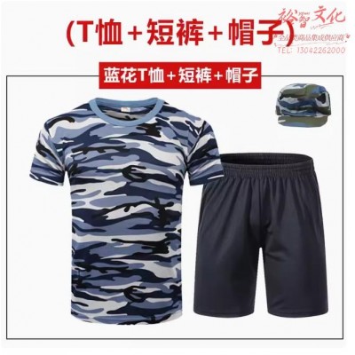 首页 > 装具 > 普通服装 > 迷彩短袖t恤短裤套装夏季男大学生速干军训服透气薄款军训迷彩服 (三件套 T恤 短裤 帽子)155/160/170/175/180/185/190/195码数SKU:yzwhyp1021294