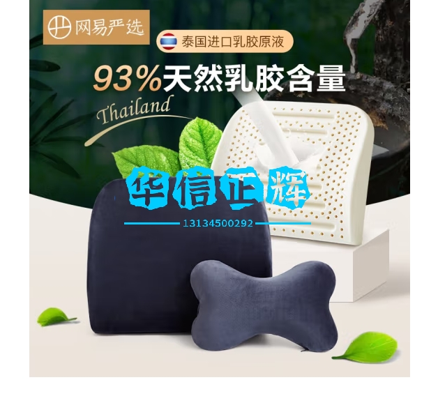 网易严选 乳胶靠枕套装 93%天然乳胶车载靠腰套靠垫 回弹支撑高品质汽车 藏蓝黑套组SKU:yzwhyp1021655