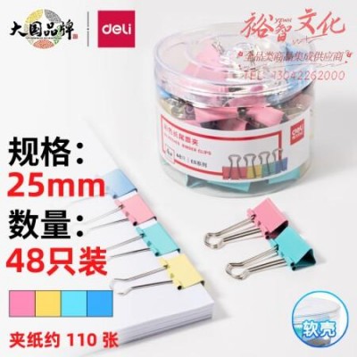 得力(deli)长尾夹凤尾夹(25mm/48只/筒)文具办公资料铁夹彩色金属燕尾夹 8554ES彩色中号SKU:yzwhyp1021948
