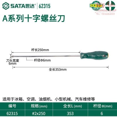 世达(SATA)62315 A系列十字形螺丝#2x250MM SKU:yzwhyp1022531