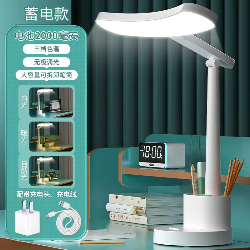 护眼台灯学习专用学生儿童宿舍阅读书桌国aa级床头灯 1-色温可调(充插两用2000毫安) 调光开关SKU:yzwhyp1022776