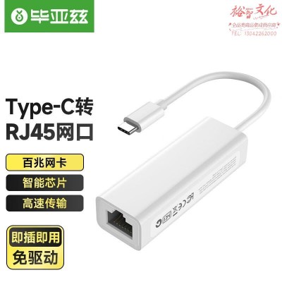 毕亚兹 以太网转换器 Type-C转RJ45网口USB-C转有线百兆网卡免驱转网口SKU:yzwhyp1022791