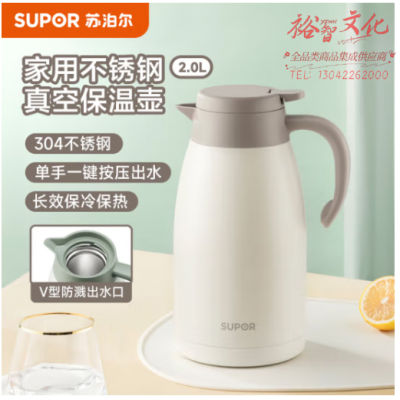 苏泊尔 SUPOR KC20KH50 家用保温暖水壶大容量 热水开水保温暖瓶 304不锈钢 真空保温壶 2L 燕麦白SKU:yzwhyp1024303