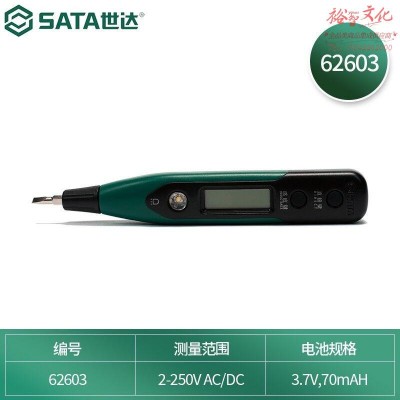 世达(SATA)高亮度测电笔数显测电笔高精度感应试电笔车用绝缘电工验电笔系列 多功能数显测电笔 62603 SKU:yzwhyp1024466