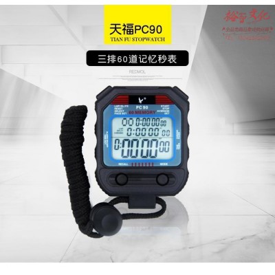 天福 天福秒表PC90 计时秒表多功能电子表专业运动比赛田径跑步计时器三排60道SKU:yzwhyp1024526