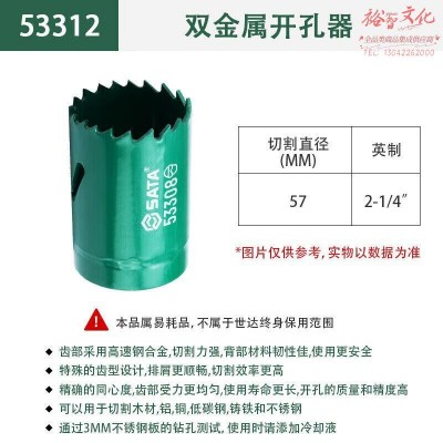 世达 (SATA)53312 双金属开孔器57MM厚铁板打孔钻头SKU:yzwhyp1024967