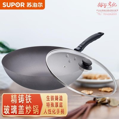 苏泊尔炒锅精铸铁锅家用炒菜锅30cm无涂层玻璃盖燃气电磁炉通用FC30Q2 SKU:yzwhyp1025509
