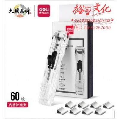 得力(deli)办公装 订推夹器套装(推夹器 60枚补充夹) 可夹纸张数40张 透明白33183 SKU:yzwhyp1025891