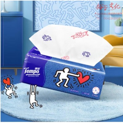 得宝(TEMPO)一博同款 抽纸 凯斯哈林联名4层90抽*4包 湿水柔韧 餐巾纸 卫生纸SKU:yzwhyp1026320