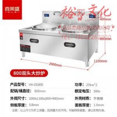 喜莱盛商用电磁炉双头电磁大锅灶 酒店学校食堂大功率20KW电磁灶台配0.8米锅HH-DG800S SKU:yzwhyp1026432