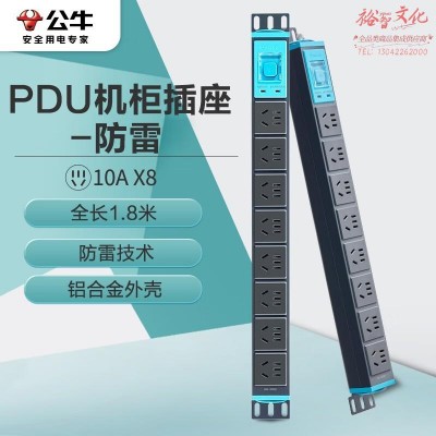 公牛 GNE-108T 电源插座 防雷PDU机柜插线板 8位总控全长3米SKU:yzwhyp1026565