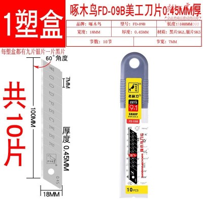 啄木鸟 美工刀片 FD-09B壁纸刀片 工业用18mm大号墙纸刀片 0.45mm厚 1盒10片无赠品SKU:yzwhyp1027405