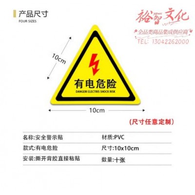 爱墨绘 有电危险警示贴10片装贴纸配电箱标识有电安全警示10cm*10cmSKU:yzwhyp1028300