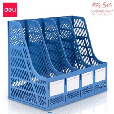 得力(deli)四联镂空桌面文件框 四栏带标签稳固文件栏/文件筐/资料框 办公用品 蓝色9848 SKU:yzwhyp1028582