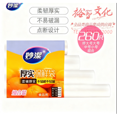 妙洁保鲜袋组合装特大号40只大号60中号80小号80共260只厚实食品袋SKU:yzwhyp1028915