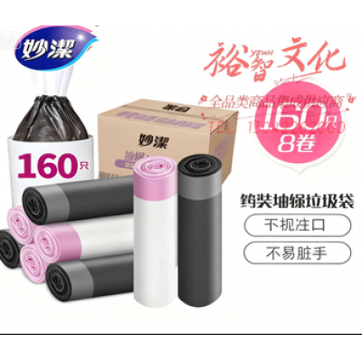 妙洁家用抽绳束口手提式厨房加厚垃圾袋箱装8卷 共160只SKU:yzwhyp1028997