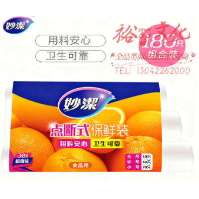 首页 > 用具 > 其他厨房用具 > 妙洁 保鲜袋组合装大号50只中号60小号70共180只 妙洁 点断式食品袋子SKU:yzwhyp1029019