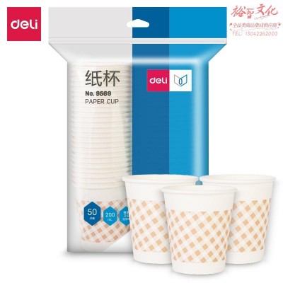 得力9569纸杯(白)200ml(50只/包)7盎司240g太阳纸 18gPE膜SKU:yzwhyp1029059