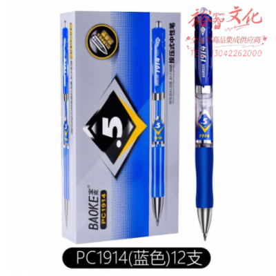 宝克PC1914按动中性笔0.5mm学生用考试签字笔红色速干水笔蓝黑色签字笔办公用品【蓝色】12支 SKU:yzwhyp1029150