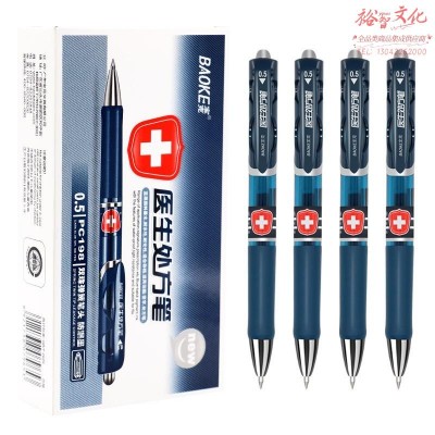 宝克(BAOKE) 按动型墨蓝水笔 蓝黑色中性笔签字笔医生处方笔0.5mm -墨蓝色医生处方笔12支 SKU:yzwhyp1029151