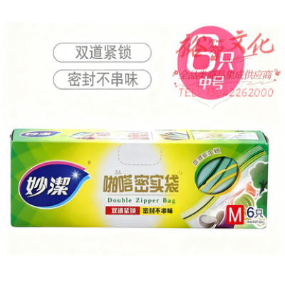 妙洁 密封袋 中号*6只 加厚食品级啪嗒密实袋冰箱厨房室内外用品SKU:yzwhyp1029321