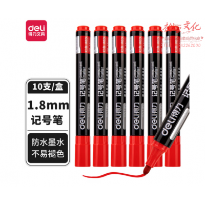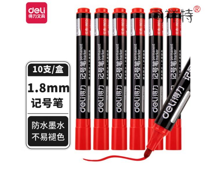得力(deli) SK109 单头细杆1.8mm记号笔 油性笔 红色10支/盒装 SKU:yzwhyp1029323