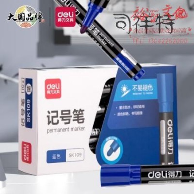 得力(deli) SK109 单头细杆1.8mm记号笔 油性笔 蓝色10支/盒装 SKU:yzwhyp1029349