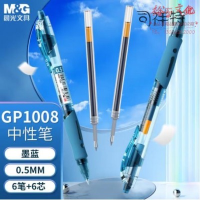 首页 > 办公用品 > 笔 > 晨光(Mamp;G)文具GP1008/0.5mm墨蓝色中性笔 子弹头按动蓝黑色签字笔 水笔/替芯套装(6支笔 6支芯) HAGP104SKU:SXT10014539SKU:yzwhyp1029592